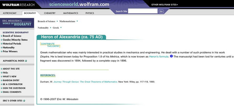 Wolfram Science World: Heron of Alexandria (Ca. 75 Ad)