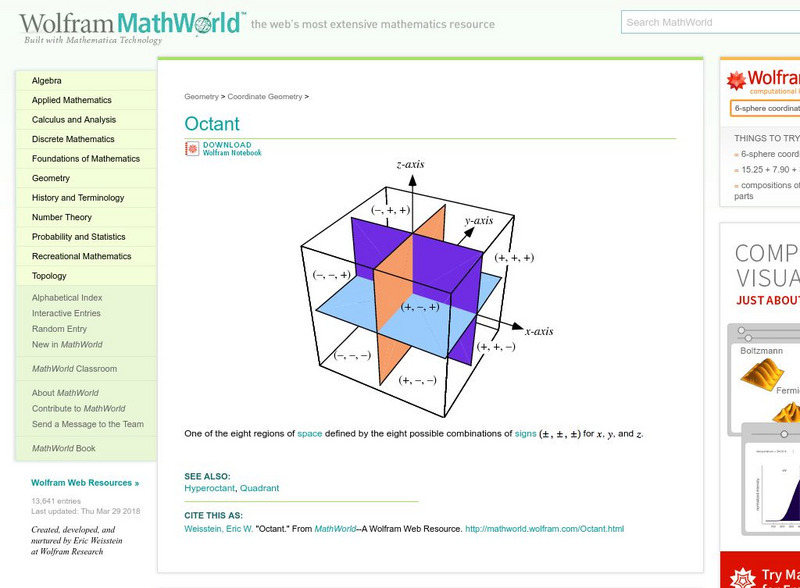 This page from MathWorld.com provides a good diagram of the eight octants of the Cartesian coordinate system. (Good picture, but not much explanation is included!)