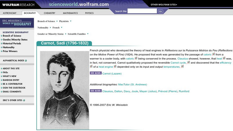 Wolfram Science World: Carnot, Sadi (1796 1832)