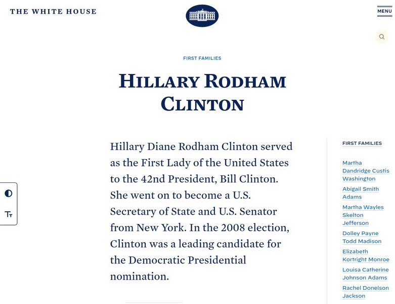 From the White House, find an official biography of Hillary Clinton, the first First Lady elected to the United States Senate and the first woman elected statewide in New York, as well as the current Secretary of State.