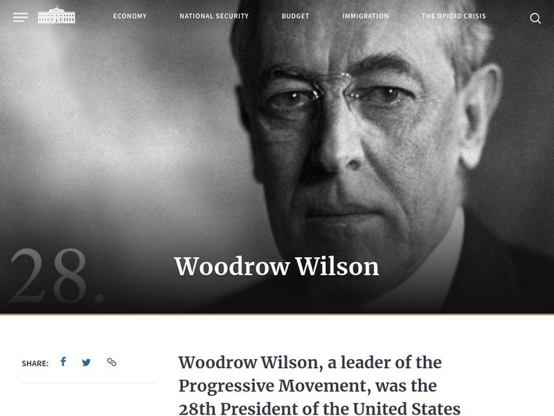 This biography of 28th President Woodrow Wilson includes information relating to his personal and presidential affairs.