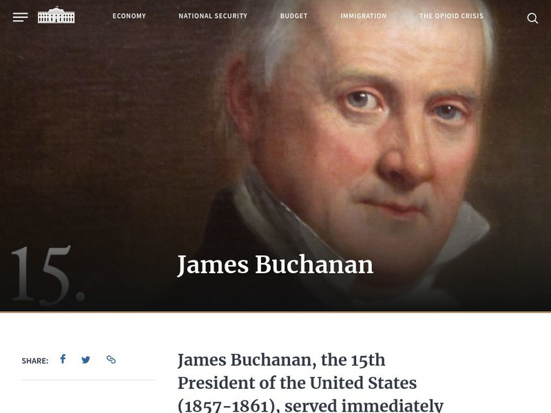 Some biographical information on the 15th president of the United States. A portrait is provided.