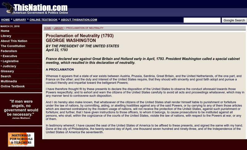 This Nation: Proclamation of Neutrality (1793)