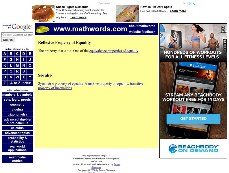 This site offers a definition for alternate interior angles with a labeled graph and links to other related words.