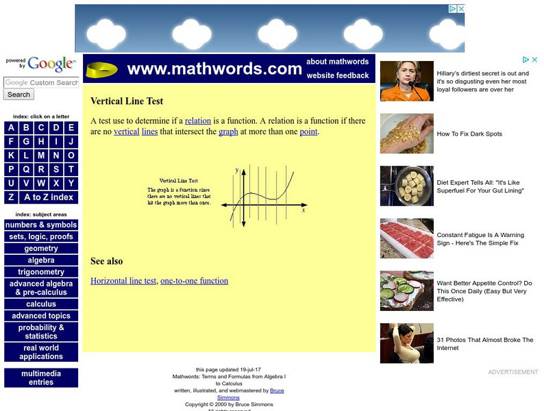 Go to this site for a basic definition of what the vertical line test is. An example illustration is also given.