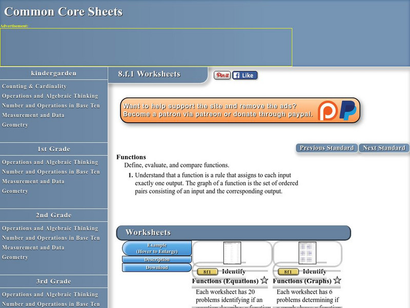 Common Core Sheets: Functions 8.f.1 Worksheets