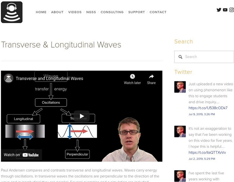 In the following video Paul Andersen compares and contrasts transverse and longitudinal waves. Waves carry energy through oscillations. In transverse waves the oscillations are perpendicular to the direction of the wave and in...