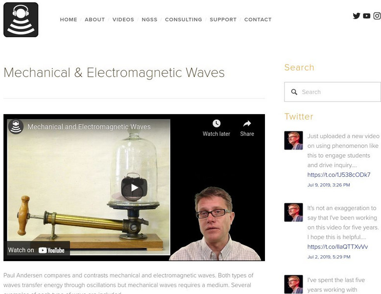In the following video Paul Andersen compares and contrasts mechanical and electromagnetic waves. Both types of waves transfer energy through oscillations but mechanical waves requires a medium. Several examples of each type of wave are...