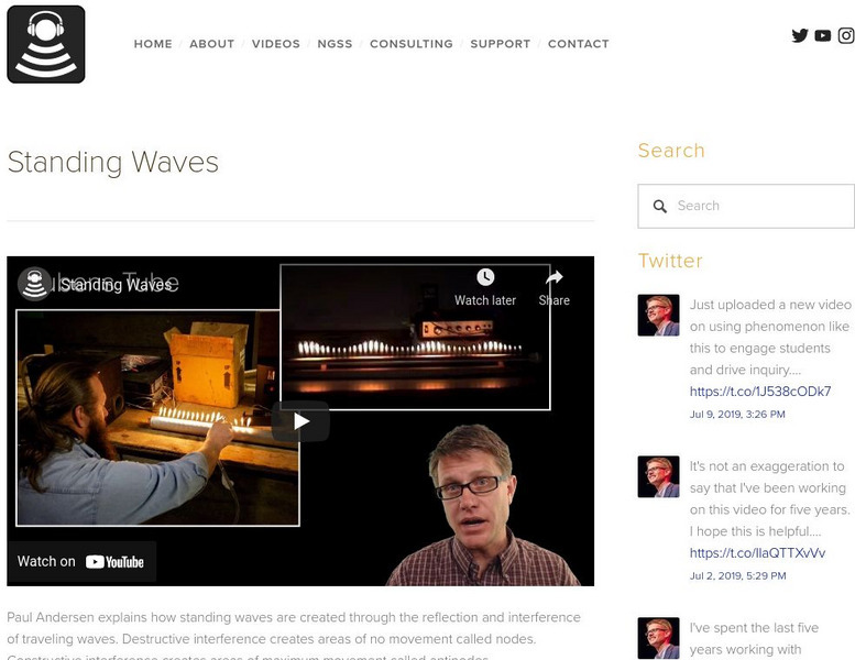 Paul Andersen explains how standing waves are created through the reflection and interference of traveling waves. Destructive interference creates areas of no movement called nodes. Constructive interference creates areas of maximum...