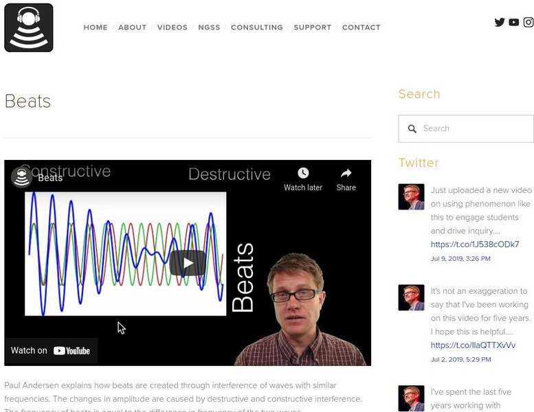In the following video Paul Andersen explains how beats are created through interference of waves with similar frequencies. The changes in amplitude are caused by destructive and constructive interference. The frequency of beats is equal...