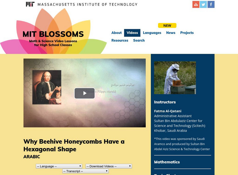 In this video [26:45], students discover why honeybees make such great engineers by studying the underlying mathematics and design of their beehives.