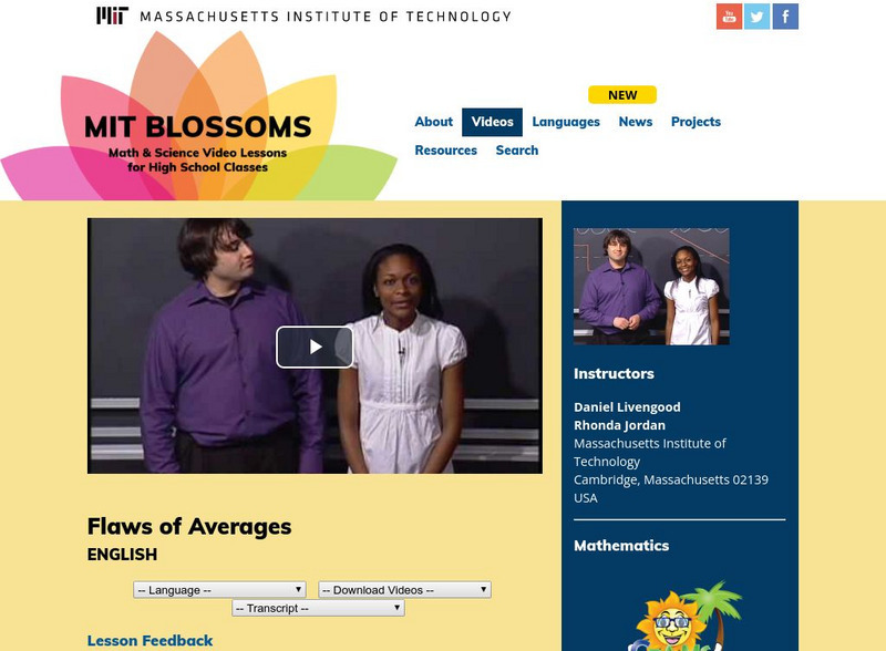 This learning video continues the theme of an early BLOSSOMS lesson, Flaws of Averages, using new example- including how all the children from Lake Wobegon can be above average, as well as the Friendship Paradox. The objective of this...