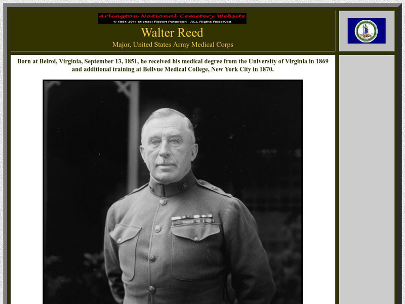 This site from the Arlington National Cemetery provides an easy to read account of the life and work of Dr. Walter Reed (1851-1902 CE), Major in the United States Army Medical Corps who proved that yellow fever was transmitted by...