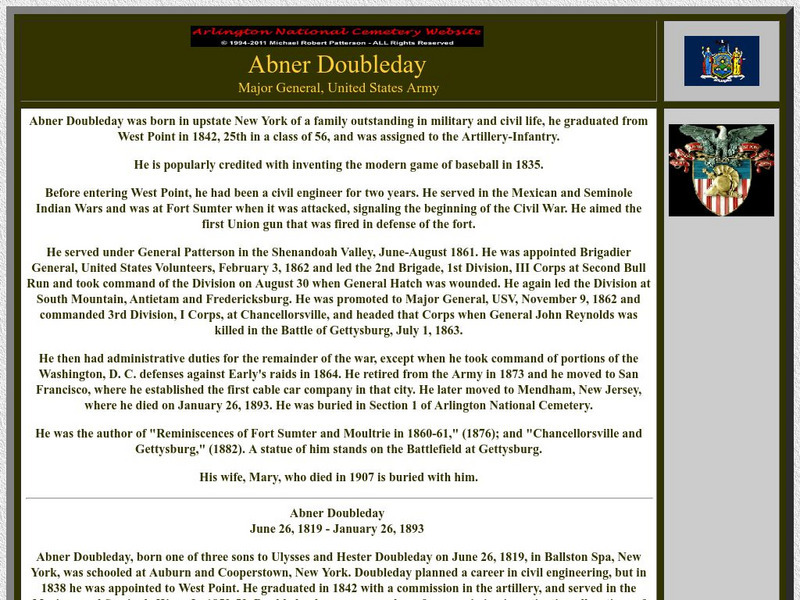 Arlington National Cemetery Website: Abner Doubleday