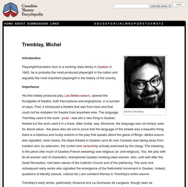 Michael Tremblay produces some of Canada's most important francophone works. Great for scene study work. This contains a lot of great information about his plays and their cultural significance.