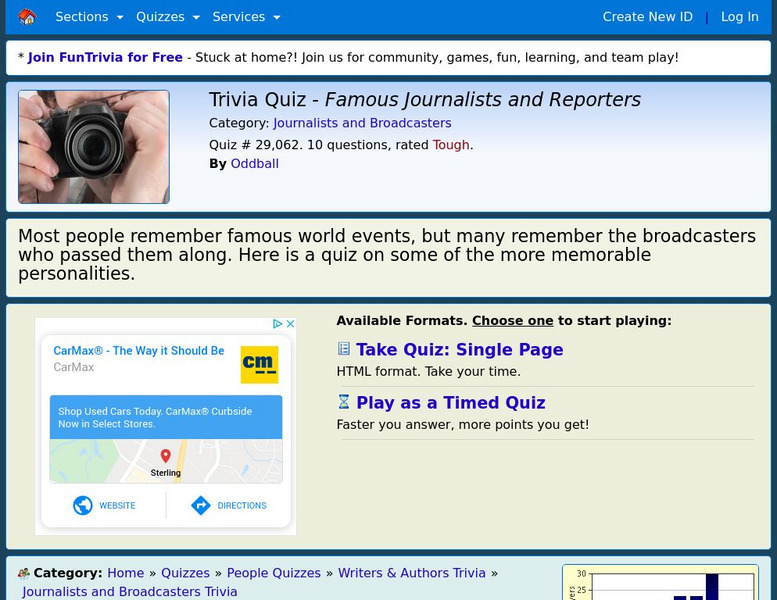 Take this quick FunTrivia.com quiz and find out how much you know about television journalists and reporters. Background information is provided with the answers after the quiz is scored.