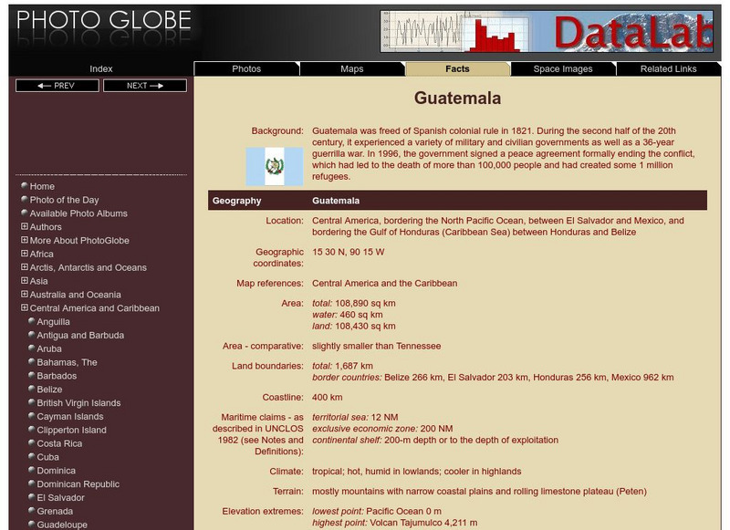 Presents general facts about Guatemala in a well organized chart form. This site is enriched by links to aerial photos of the Santa Maria volcano and other images.