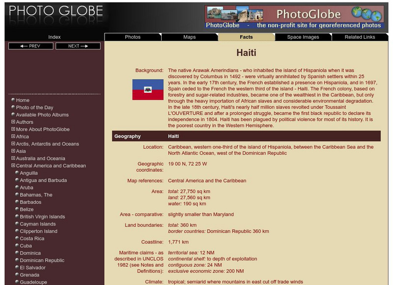 Offers background and many general country facts and statistics about Haiti in a well organized chart form. This site is enriched by links to maps and an image of its flag.