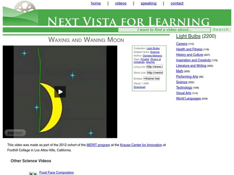 Next Vista for Learning is an online library of free videos for learners. Brief videos (under 5 minutes) on a variety of topics are introduced by students and teachers. The site is divided into three parts: Learning about anything,...