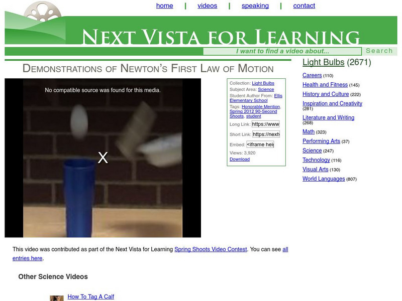 If you need to visually "see" Newton's First Law this video is for you! Video explores the first law using some demonstrations to explain the law. [1:33]