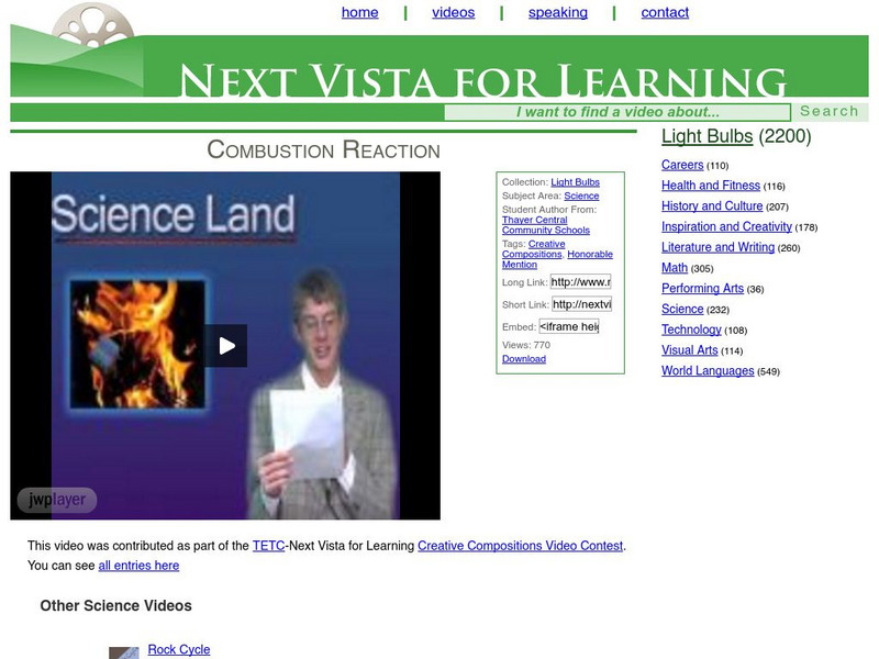 Next Vista for Learning: Combustion Reaction