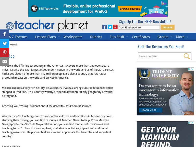 Your complete resource for everything to do with Mexico. Here you can find lesson plans and units, activities, worksheets, clipart, pictures, and other internet resources.
