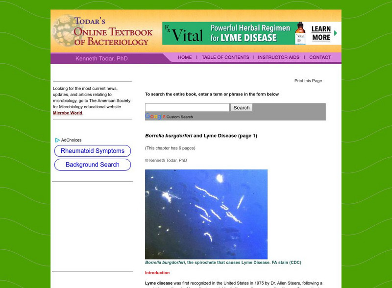 Todar's Online Textbook of Bacteriology: Lyme Disease (Borrelia Burgdorferi)