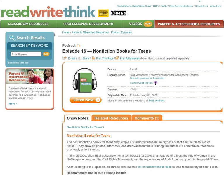 Read Write Think: Episode 16: Nonfiction Books for Teens