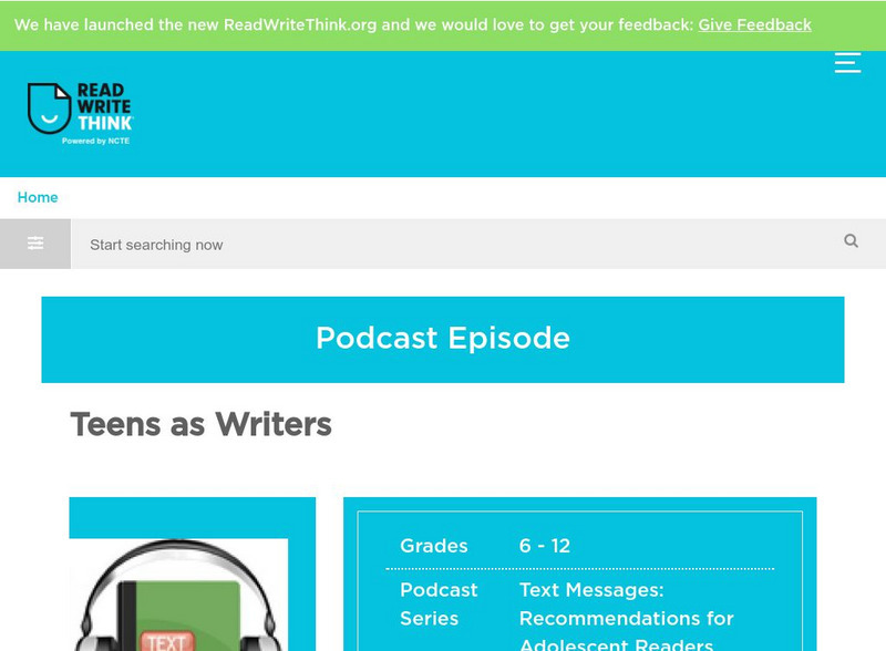 Read Write Think: Text Messages: Recommendations for Adolescent Readers