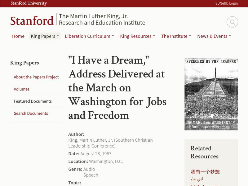 Stanford University: King Institute: Encyclopedia: "I Have a Dream" Speech