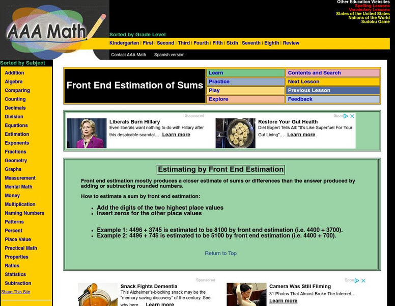 Students can practice estimating sums using front-end estimation in a series of self-check exercises and timed learning games.