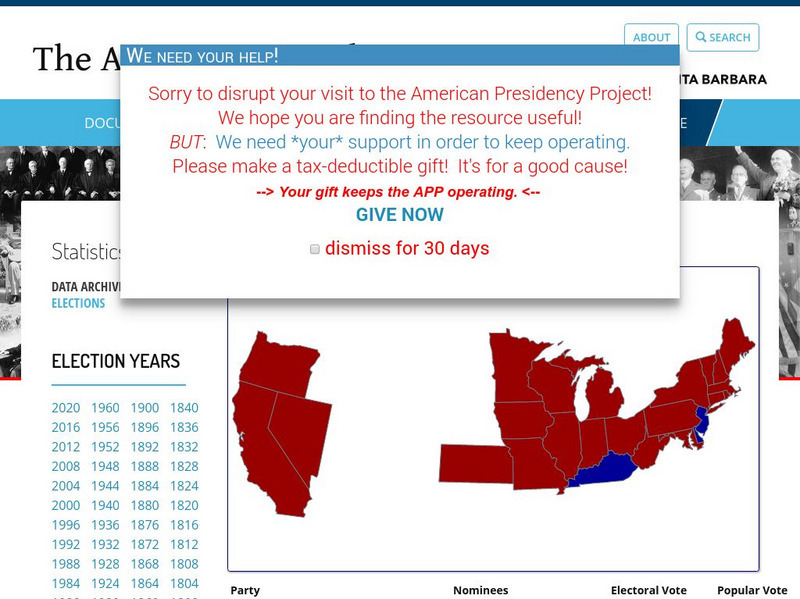 Online resource that provides detailed electoral data for the presidential election of 1864 won by Republican candidate, Abraham Lincoln.