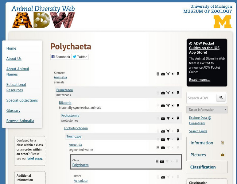 Resource provides a general description of marine worms, including sand worms, tube worms and clam worms.