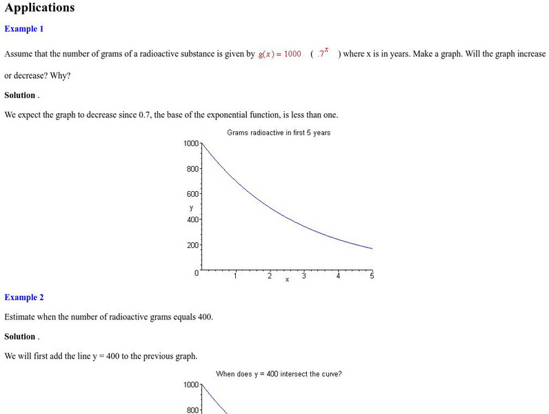 The tutorial examines exponential function applications. Students learn about the mathematics concept through examples with detailed solutions.