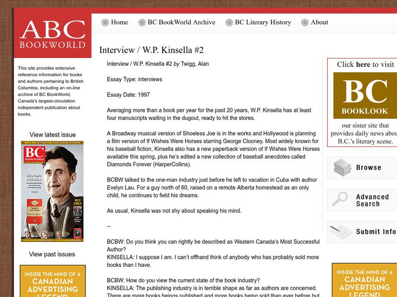 This is the transcript of a 2006 interview with W.P. Kinsella where the author talks about his work adjudicating the Amazon/Books In Canada First Novel Contest, and issues around beginning novelists.