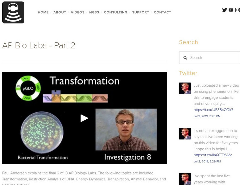 Paul Andersen explains the final 6 of 13 AP Biology Labs. The following topics are included: Transformation, Restriction Analysis of DNA, Energy Dynamics, Transpiration, Animal Behavior, and Enzyme Activity.