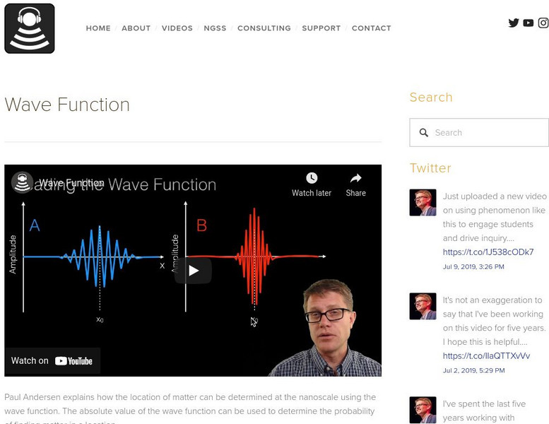 In this video Paul Andersen explains how the location of matter can be determined at the nanoscale using the wave function. The absolute value of the wave function can be used to determine the probability of finding matter in a location. [4:50]