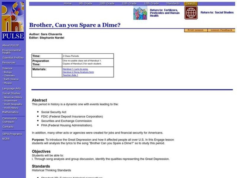 This Brother, Can you Spare a Dime? lesson plan also includes: