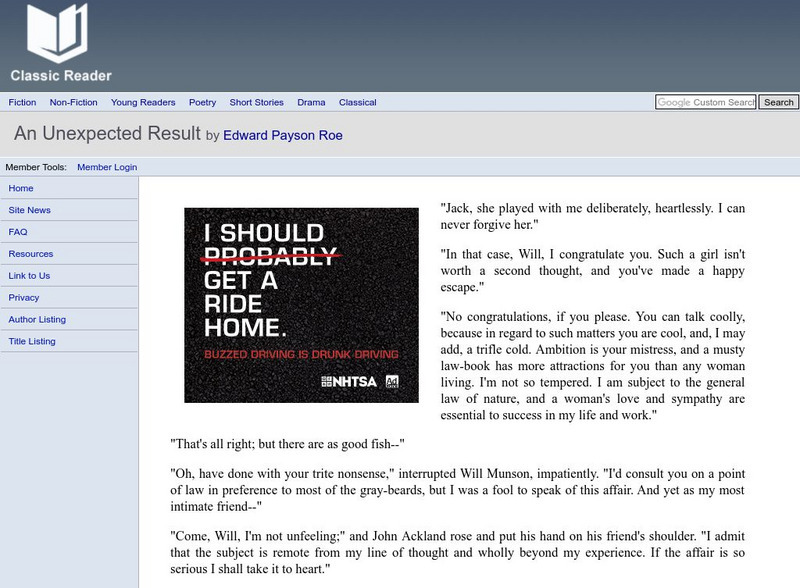 Read the full text of "The Unexpected Result" by Edward Payson Roe on this site.