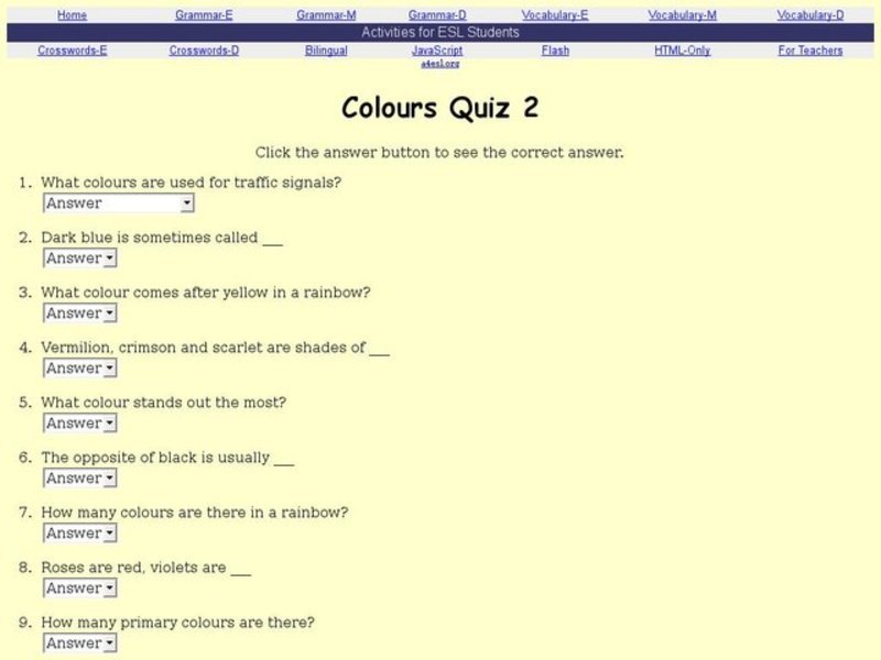 In this colors worksheet, students answer short answer questions where they identify colors asked. Students complete 10 questions total.