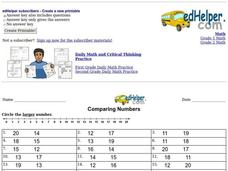 In this number comparison activity, students use the number line to help them find the larger number in 49 sets of problems. Students circle the larger number.