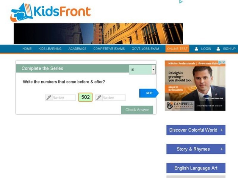For this complete the number series #15 worksheet, student type the numbers that come before and after the given number, with immediate feedback online.