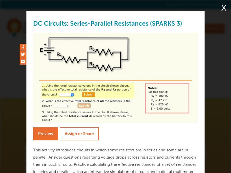 Answer questions regarding voltage drops across resistors and currents through them in such circuits. Practice calculating the effective resistances of a set of resistances in series and parallel.