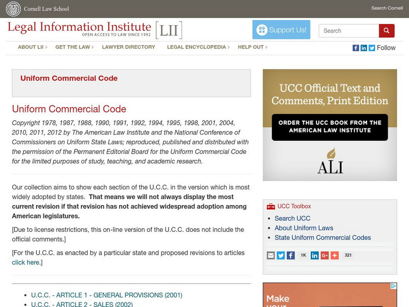 Complete text of the Uniform Commercial Code including all 9 articles. Provided by FindLaw.
