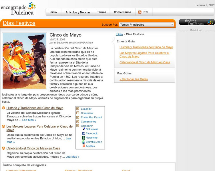 The resources listed in this site summarize the history of the Cinco de Mayo festival and highlights some of its contemporary celebrations.