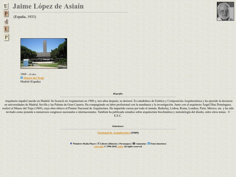 This page has a brief bibliography of the Spanish architect Jaime Lopez de Asiain.