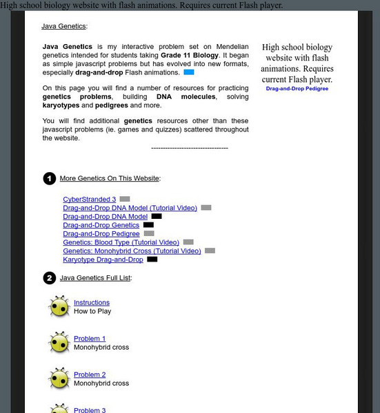 A good interactive genetics site for testing your knowledge of Mendel's principles. Perform monohybrid and dihybrid crosses and see the results.