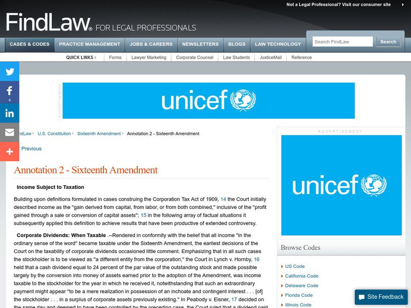 This resource describes the different types of income that are taxable by the government based on numerous court cases in which definitions of the 16th amendment Corporation Tax Act of 1909 were applied.