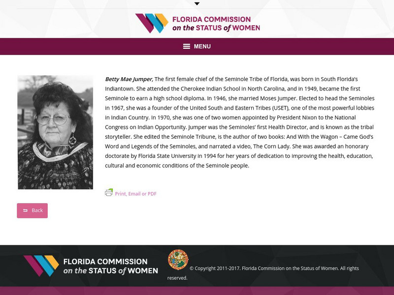 A biographical look of Betty Mae Tiger Jumper, the first female chief of the Seminole Tribe of Florida. Her many achievements are noted in this article.