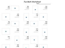 In this 3 digit addition activity, students add the 3 digit numbers by 3 digit numbers to solve the equations. Students complete 15 problems.